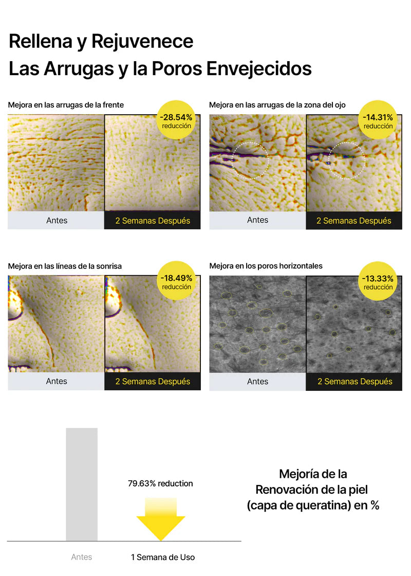 · Clínicamente probado para mejorar las arrugas y reducir el tamaño de los poros.